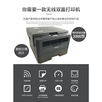 品牌名称:brother/兄弟 产品参数: • 品牌: brother/兄弟 • 型号: DCP-7090DW • 涵盖功能: 打印 扫描 • 打印机类型: 黑白激光 • 接口类型: USB • 颜色分类: 兄弟DCP-7090DW打印复印扫描【双面打印+无线WIFI】 • 最大幅面: A4 • 是否支持网络打印: 无线网络打印 • 是否支持自动双面打印: 自动 • 生产企业: 兄弟工业株式会社 • 适用场景: 商务办公 • 耗材类型: 鼓粉分离
