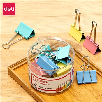 得力8551ES彩色长尾票夹筒装(混)(12只/筒)