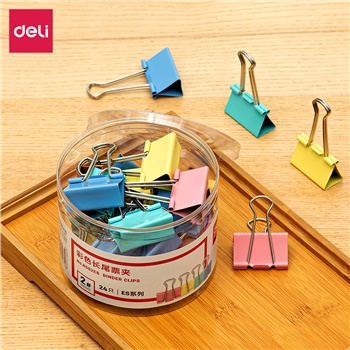 得力8552ES彩色长尾票夹筒装(混)(24只/筒)