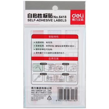 得力6418自粘性标贴(35*50mm二分之一白色)(个)