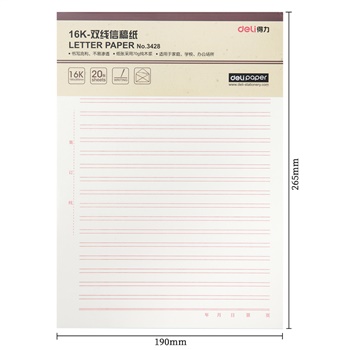 得力3428双线信稿纸-70g-266*190mm(本)