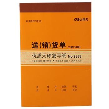 得力9388二联送(销)货单据(黄)188*129mm(本)