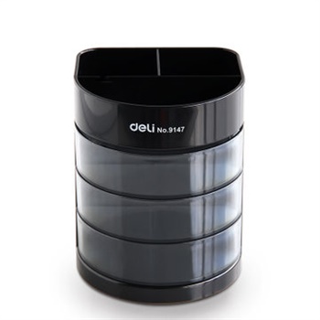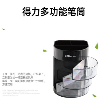 得力9147三层多功能笔筒(黑)