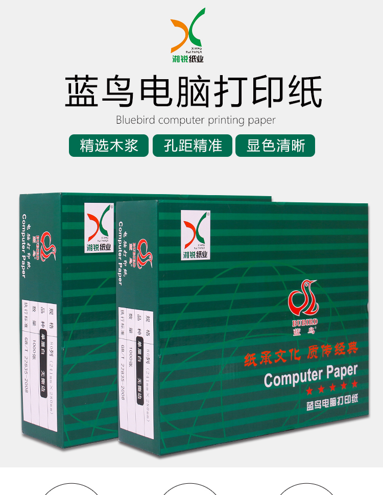 办公用纸 > 电脑打印纸 > > 蓝鸟电脑打印纸 241-3 1/3 彩色撕边 1000张/包