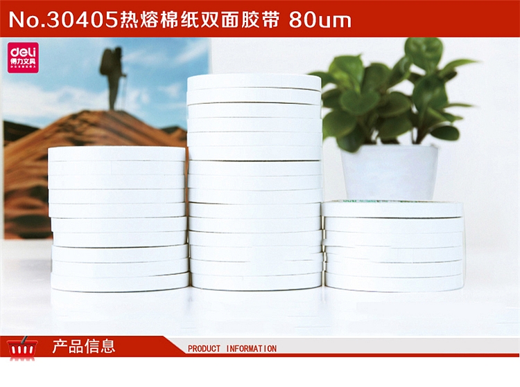 办公文具 > 胶粘用品 > 双面胶 > 得力30405棉纸双面胶带12mm*10y*80um(白)(1卷/袋)