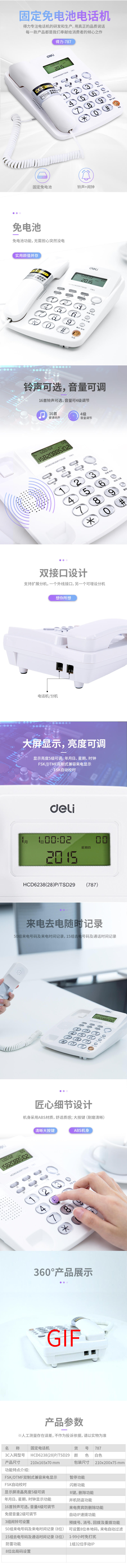 数码及通讯 > 通讯设备 > 普通电话机 > 得力787电话机(白)(台)