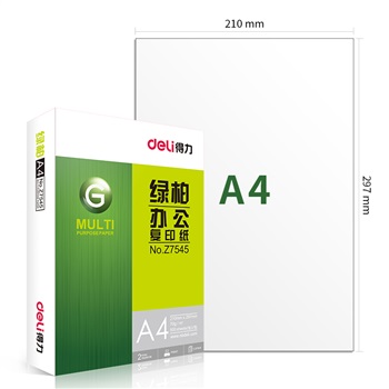 得力Z7547绿柏复印纸A4-70g-8包(白色)(件)