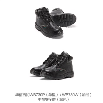 华信WB730P中帮吉豹牌防砸防穿刺安全鞋,进口牛皮鞋面, 钢头钢底
