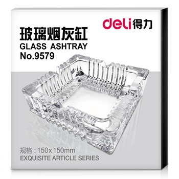 得力9579玻璃烟灰缸(透明)(只)150*150mm